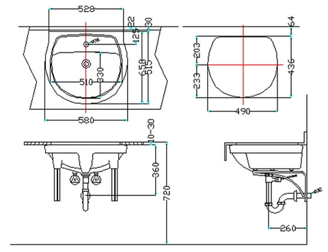 Bản vẽ kích thước Chậu rửa âm bàn INAX AL-2094V